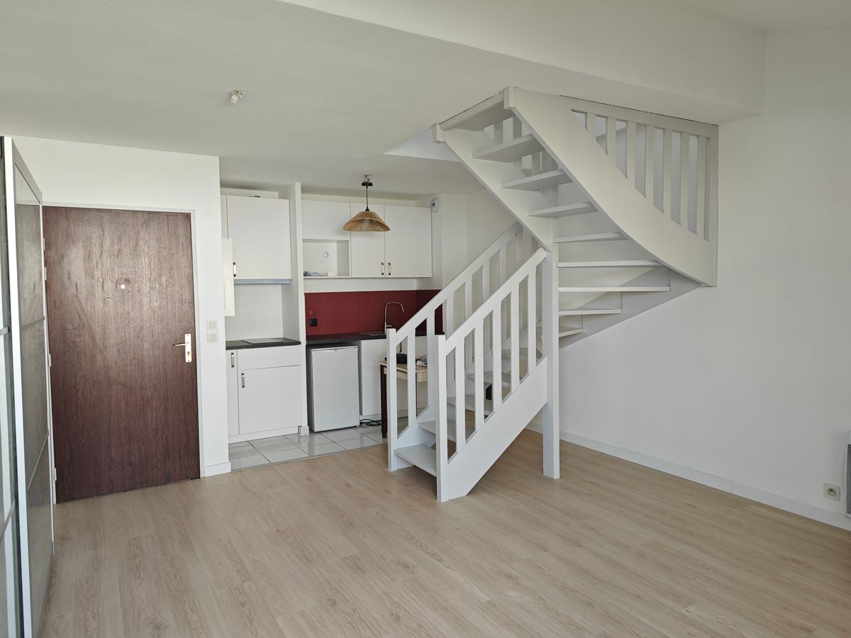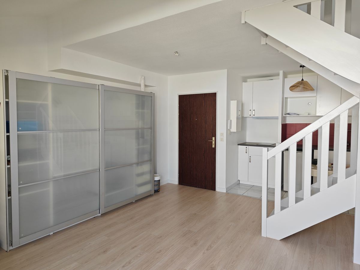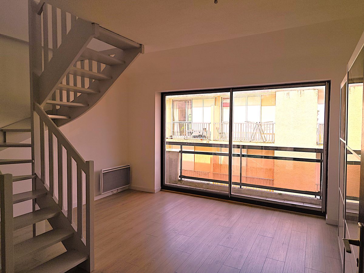Appartement type 2 duplex rénové en troisième et dernier étage d'un immeuble année 91, balcon, parking privatif en sous-sol avec cellier électrifié attenant, vendus libres, à moins de 50 mètres du Métro, valeur locative mensuelle 700 Euros charges comprises en location longue durée meublée, copropriété 56 lots divisée en trois bâtiments, charges annuelles courantes 700 Euros, estimation du coût annuel d'énergie entre 770 et 1043 Euros.