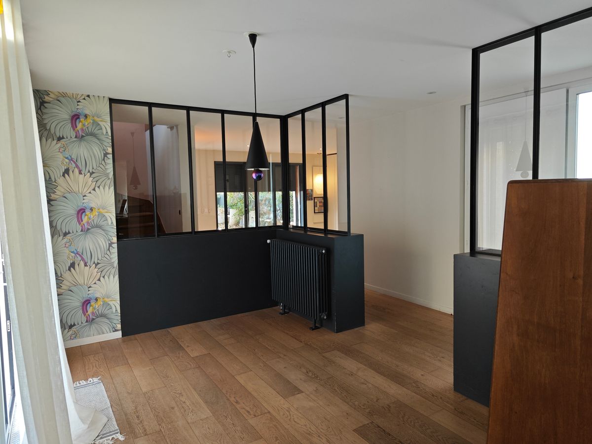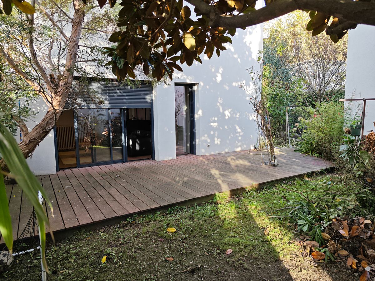 Maison type 5 des années 60 rénovée, sur 2 niveaux comprenant une belle cuisine séparée et toute équipée de 27 m², un espace salle à manger et salon de 39 m², une buanderie et un wc au rez-de-chaussée, 4 chambres dont une de 15 m² avec dressing, grande salle salle de bains avec wc et un balcon à l'étage, belles prestations dans la cuisine et la salle de bains, sans mitoyenneté par la partie habitable, un jardin de 150 m² dont une terrasse de 20 m² exposés sud-ouest, une cour permettant de stationner 2 véhicules, à 300 mètres du Métro.